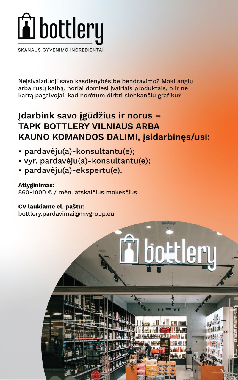 CV laukiame el.paštu: bottlery.pardavimai@mvgroup.eu
