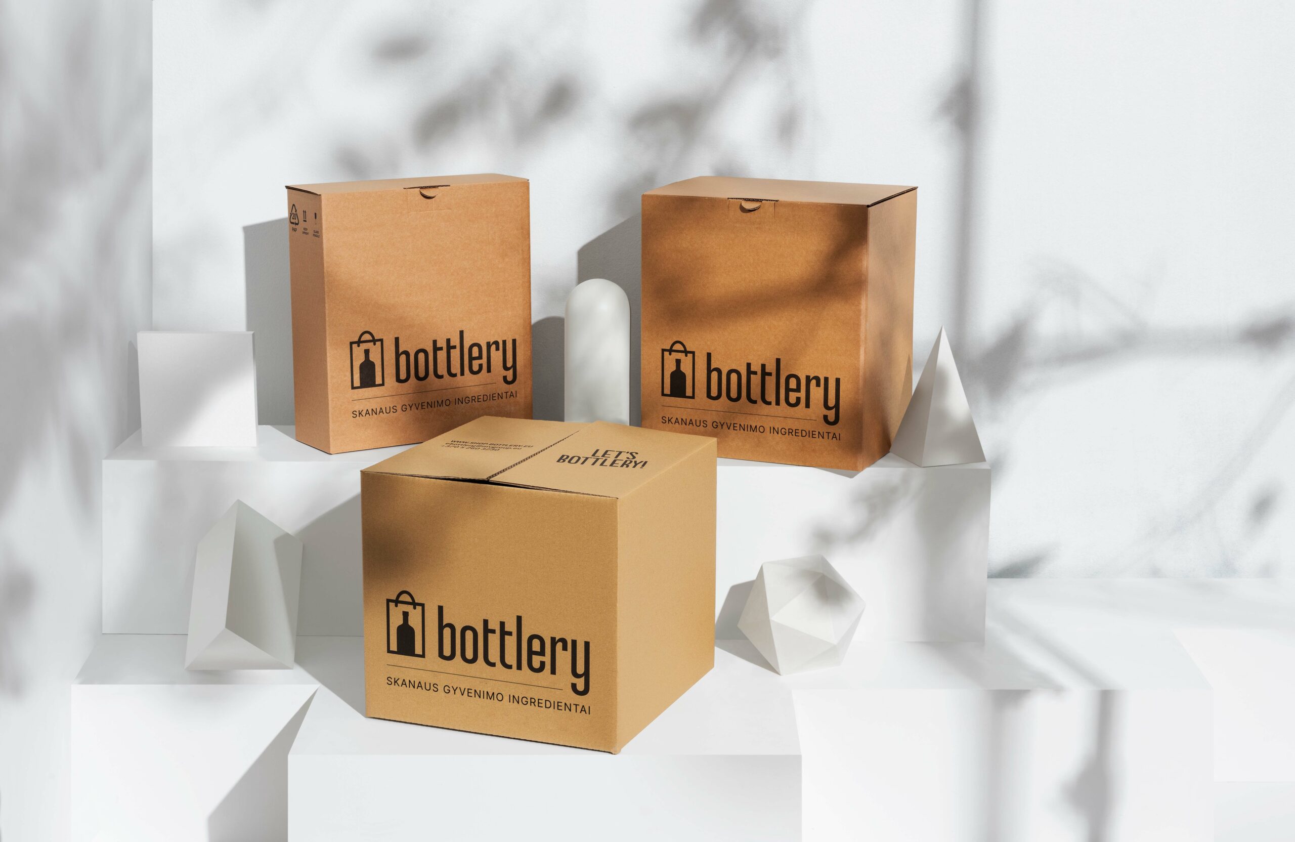 - Pirmines gėrimų pakuotes naudojame antrą kartą, į jas sudedami klientų įsigytas prekes. Kad būtų patogiau nešti – klijuojame specialiai tam skirtas rankenas.